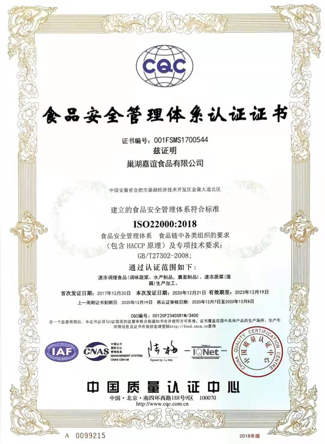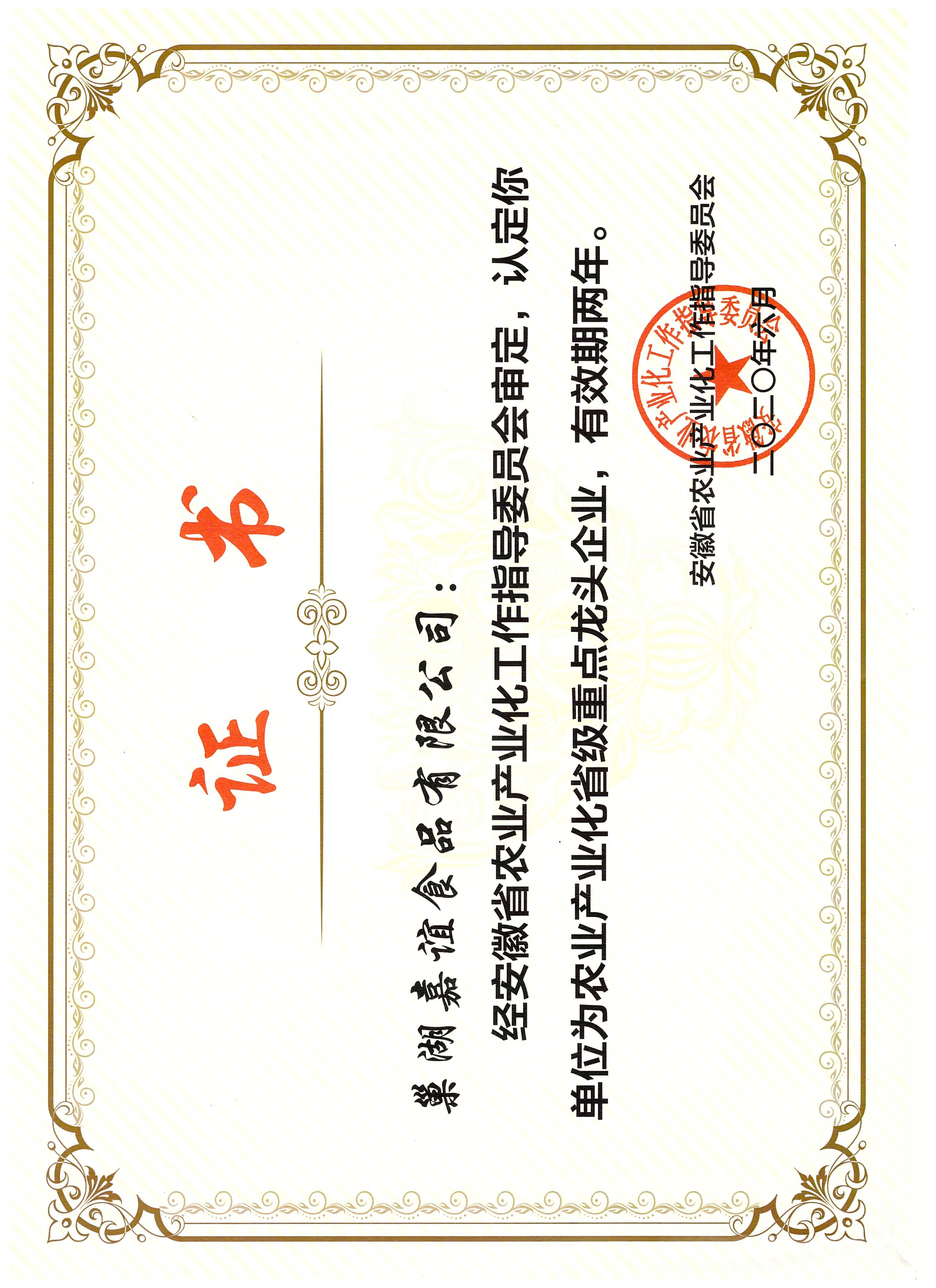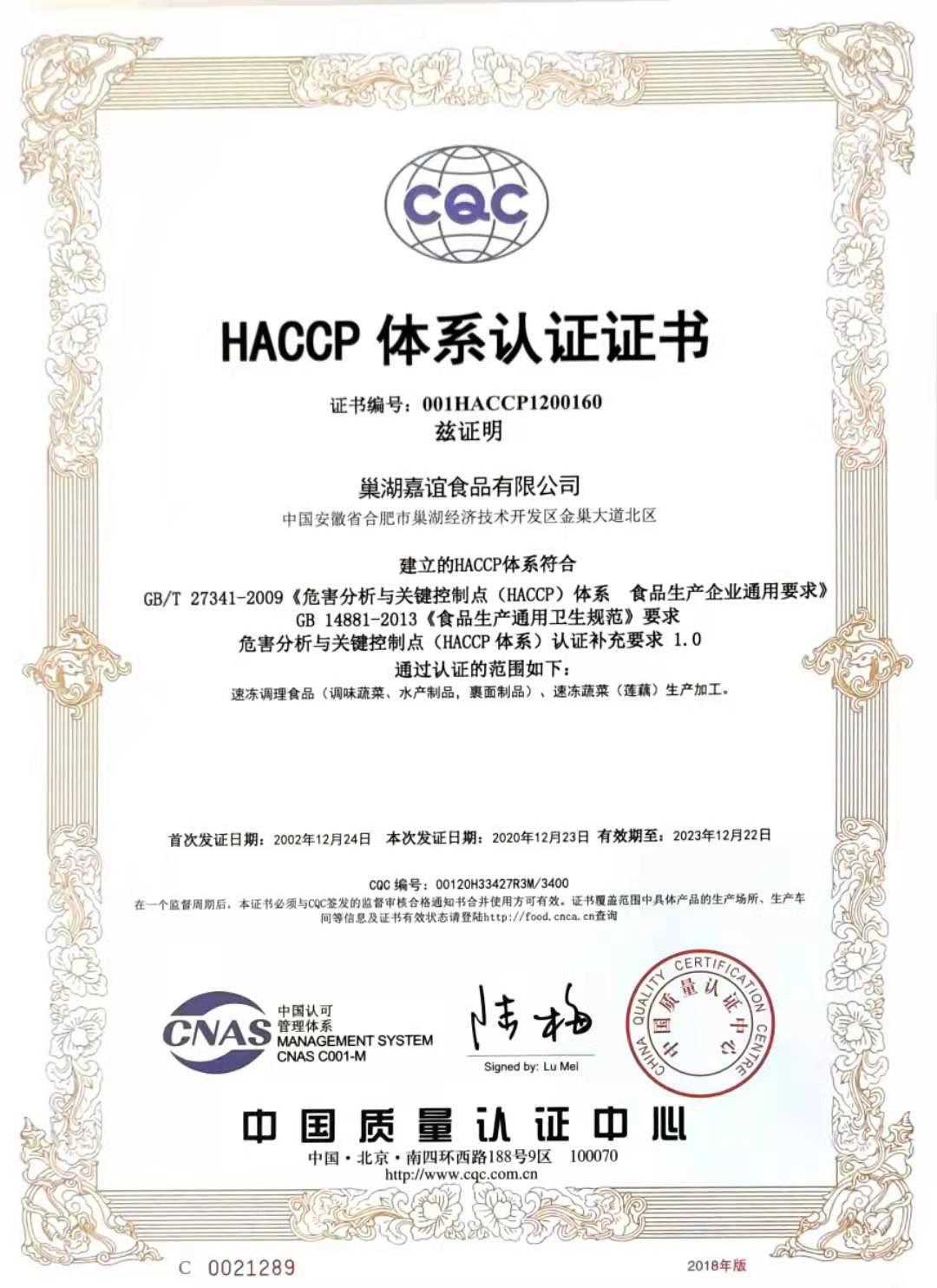 作為國(guó)家高新技術(shù)企業(yè)和安徽省農(nóng)業(yè)產(chǎn)業(yè)化龍頭企業(yè),多年來(lái)公司一直致力于農(nóng)產(chǎn)品精深加工業(yè)的發(fā)展,注重引進(jìn)國(guó)際領(lǐng)先的加工技術(shù)和管理理念。公司相繼通過HACCP食品安全管理體系、ISO9001、ISO22000質(zhì)量管理體系、ISO14001環(huán)境管理體系、ISO45001職業(yè)健康管理體系和原料基地GAP認(rèn)證。