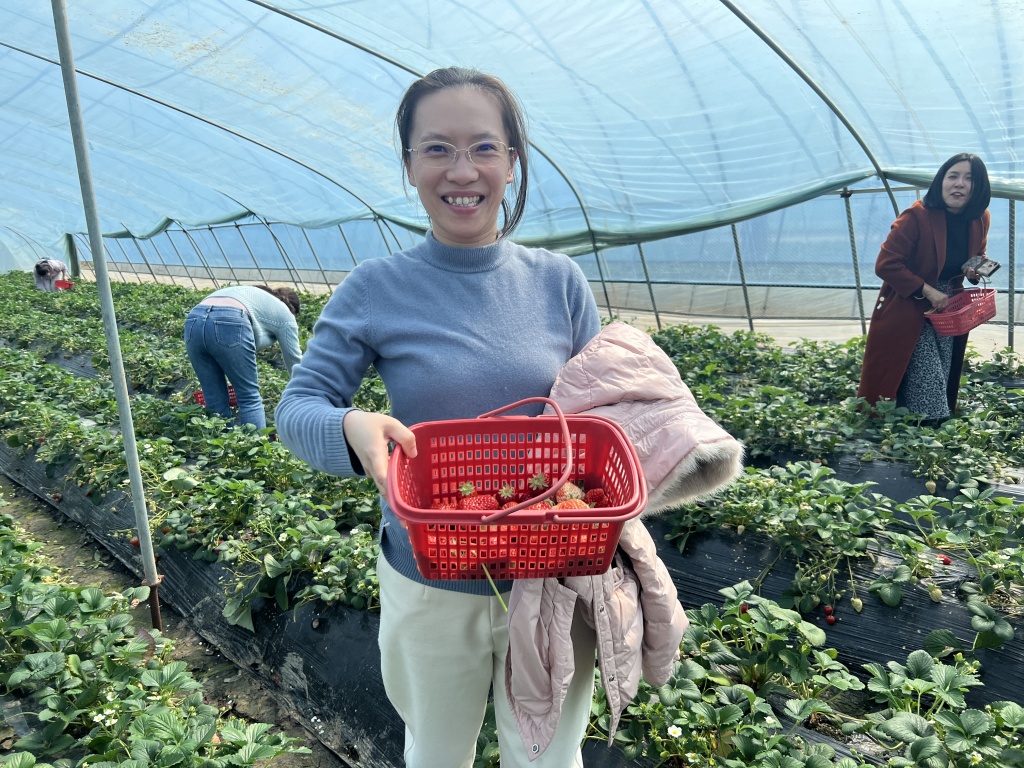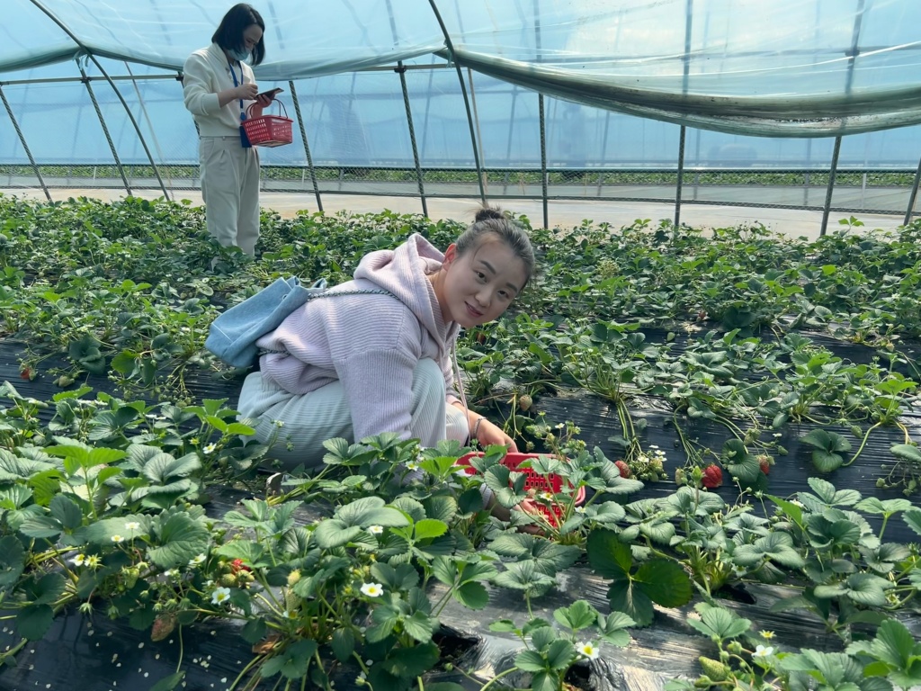 連片的草莓棚里,顆顆草莓飽滿(mǎn)、香甜,透著勃勃生機(jī),甜蜜的香氣撲鼻而來(lái)。大家按捺不住興奮的心情,提著小框穿梭在草莓田間精挑細(xì)選,或駐足合影、或互相幫助,不一會(huì)兒,筐子里已是碩果累累,收獲的喜悅溢于言表。采摘的同時(shí),果園負(fù)責(zé)人還為大家介紹了草莓品種、草莓的栽培方法和現(xiàn)代農(nóng)業(yè)發(fā)展?fàn)顩r。