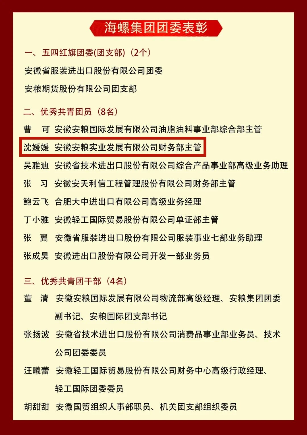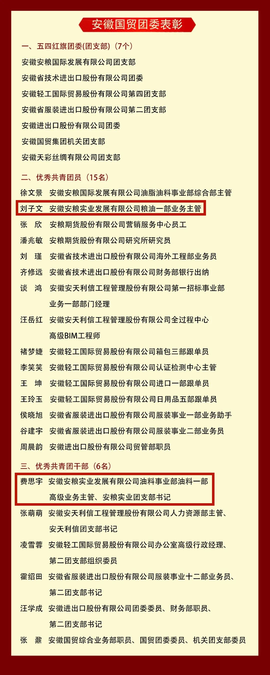 安糧實(shí)業(yè)團(tuán)員青年榮獲海螺集團(tuán)、安徽國(guó)貿(mào)表彰!