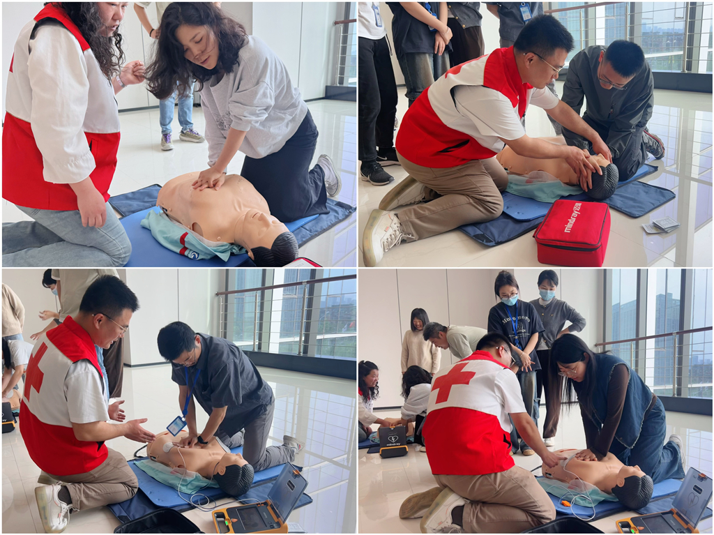 活動緊扣“學(xué)技能、強(qiáng)擔(dān)當(dāng)、踐初心”目標(biāo),精心設(shè)置標(biāo)準(zhǔn)化急救技能培訓(xùn)課程。在安徽省紅十字會專業(yè)講師的指導(dǎo)下,黨員同志們學(xué)習(xí)了心肺復(fù)蘇(CPR)、自動體外除顫儀(AED)操作、創(chuàng)傷止血包扎、氣道異物梗阻處理等核心急救技術(shù)。針對心梗、腦卒中早期識別及燒燙傷應(yīng)急處置等日常生活中常見的突發(fā)場景,講師也進(jìn)行了專項教學(xué)。課程采用理論講解與實操演示相結(jié)合的模式,借助模擬人體設(shè)備逐項分解急救動作要領(lǐng),確保參訓(xùn)黨員能夠掌握規(guī)范、科學(xué)的急救流程。